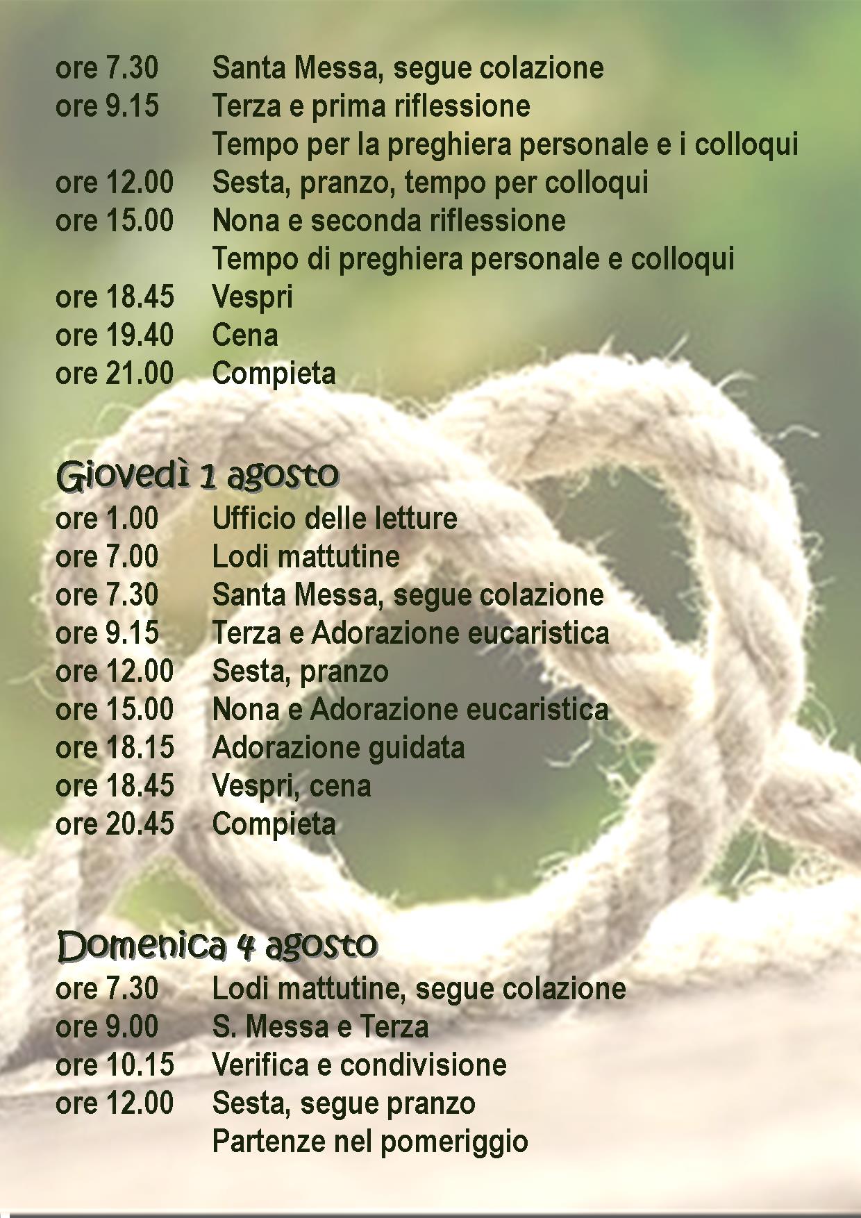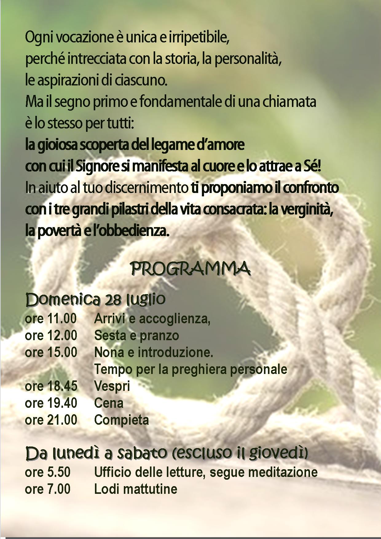 NB: l’iniziativa si svolgerà solo qualora si raggiunga un numero minimo di iscritte; prerequisito necessario: avere una guida spirituale.