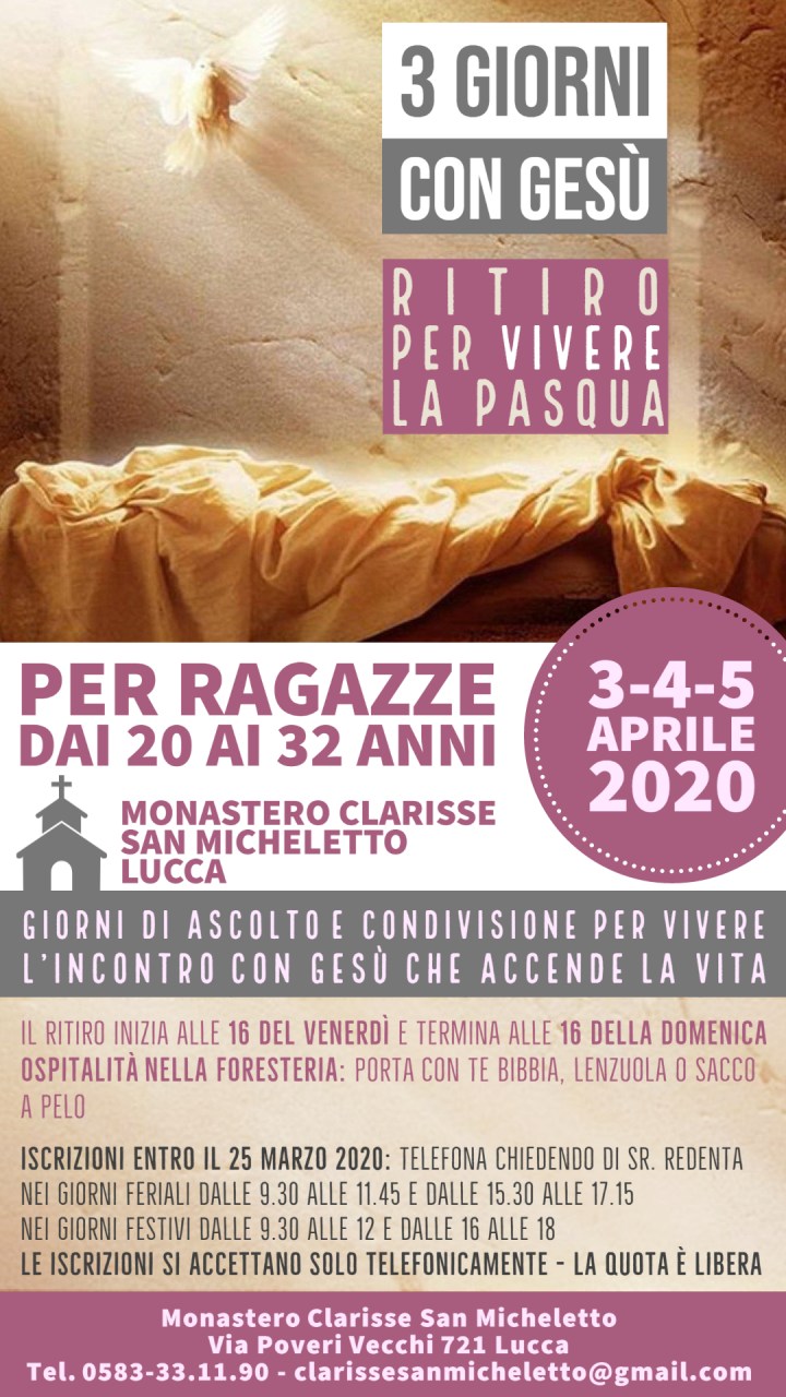 Iniziativa delle Clarisse di Lucca per ragazze dai 20 ai 32 anni.