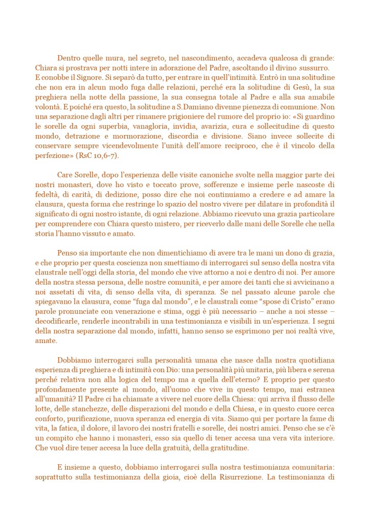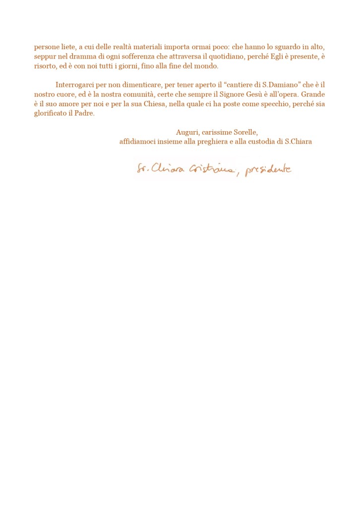 Lettera della Madre Presidente