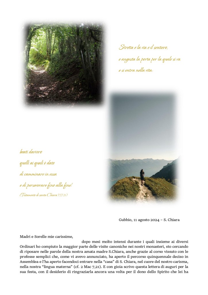 Solennità della Madre Santa Chiara, lettera della Madre Presidente