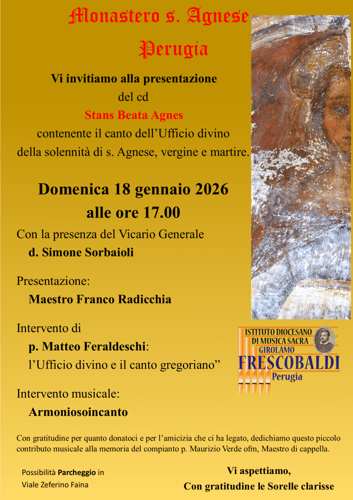 20 gennaio :Ore 18 primi vespri della solennità ( con p. Giovanni Pinna ofm)